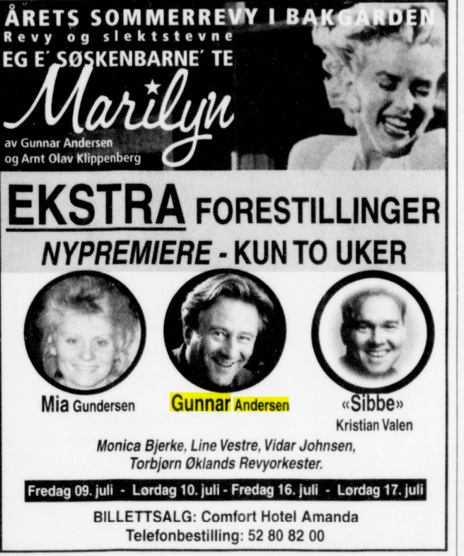 «Eg e’ søskenbarnet te Marilyn» var en sommerrevy som ble satt opp på Bakgården i Haugesund i 1999. Den ble skrevet og regissert av Gunnar Andersen, som ikke spilte i den selv, utenom de to siste ukene av showet. Flere kjente rogalandsartister opptrådte i gjesteroller.