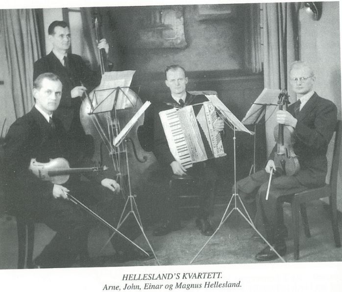 Helleslands kvartett DansemusikkUnderholdningsmusikkKvartett bestående av fire brødre som holdt flere konserter i Karmøy/Haugesundområdet. Kvartteten samarbeidet gjerne med koret Havdur. Den besto av Arne, John , Einar og Magnus Hellesland. Kilder Spor dei sette III- Martin Gjersvik