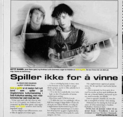Kniv å Gaffel besto av Jarle Reke (gitar) . Andreas Lone (trommer) , Tommy Jørpeland (sang) .