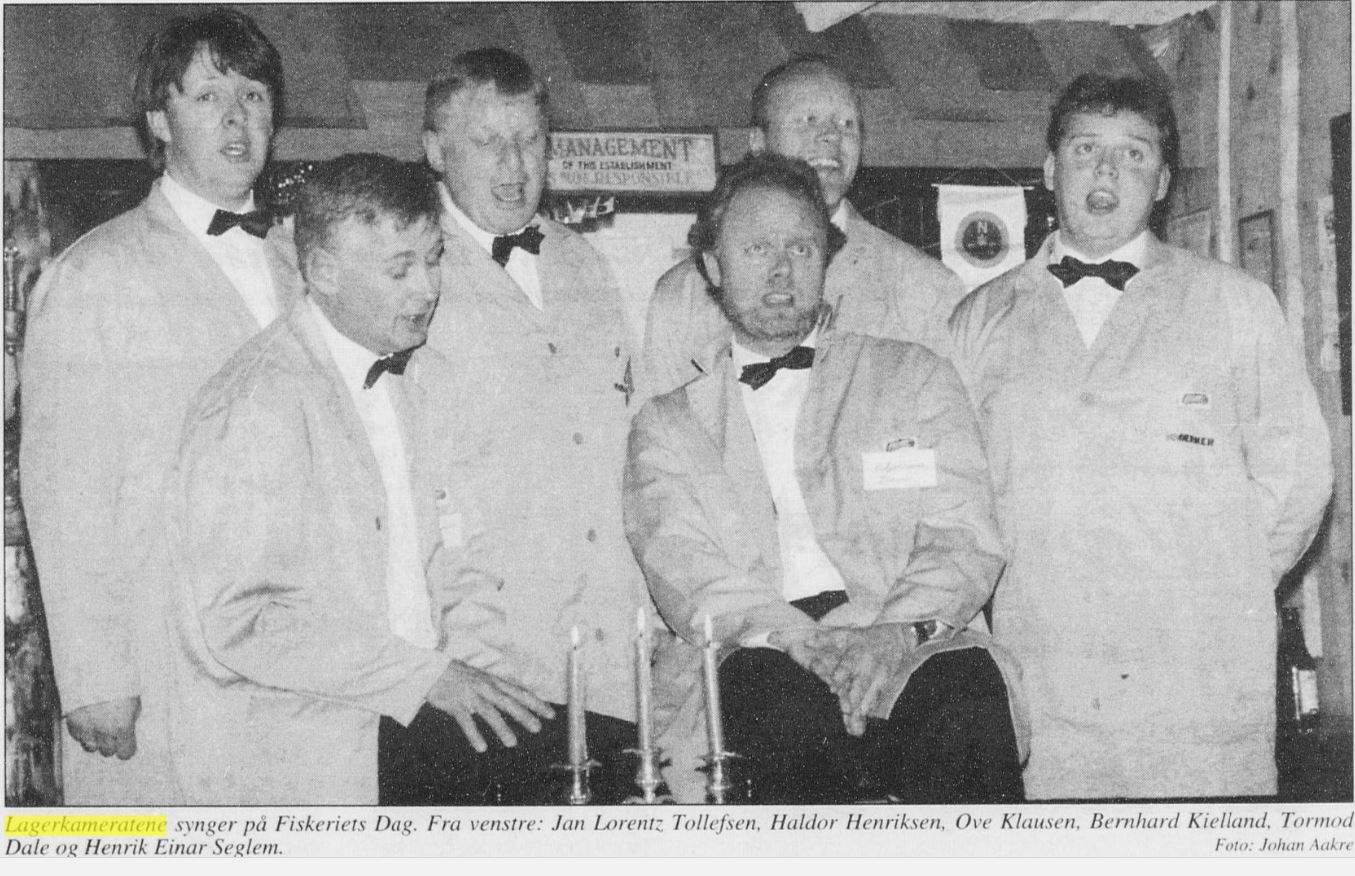 Lagerkameratene besto av arbeidere fra lageret fra H. E Seglem i Egersund. Alle var også aktive i Egersunds Mandsangforening og dets minikor.