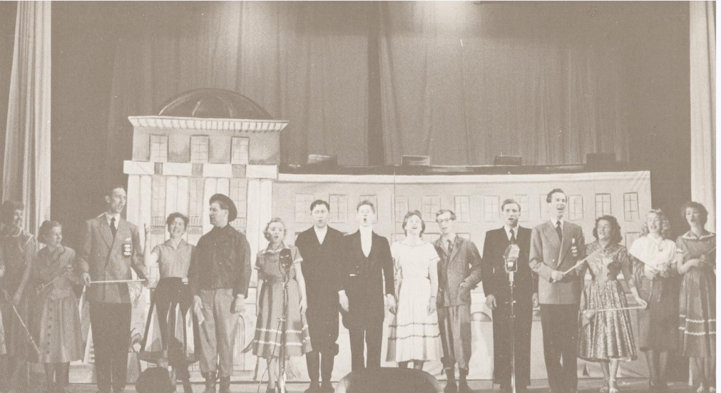«På med flossen» var Haugesunds jubileumsrevy i 1954. Her ble bysangen «Jubileumsvalsen/Du evig unge Haugesund».