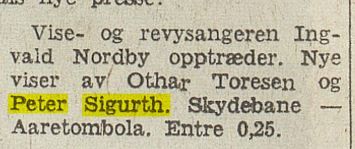 Peter Sigurth var en kjent stavangerskuespiller. Han hadde stort sett talende roller, og var teaterdirektør. Men opptrådte i en og annen operette.